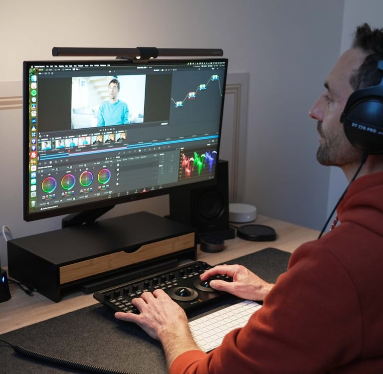 Une fois le tournage terminé commence le travail de montage. Je passe en revue toutes les images capturées pour raconter votre histoire. Chaque film est pensé comme une pièce unique, à votre image.