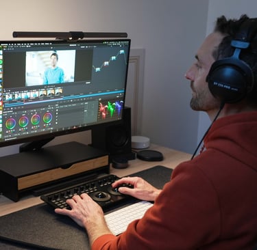 Une fois le tournage terminé commence le travail de montage. Je passe en revue toutes les images capturées pour raconter votre histoire. Chaque film est pensé comme une pièce unique, à votre image.